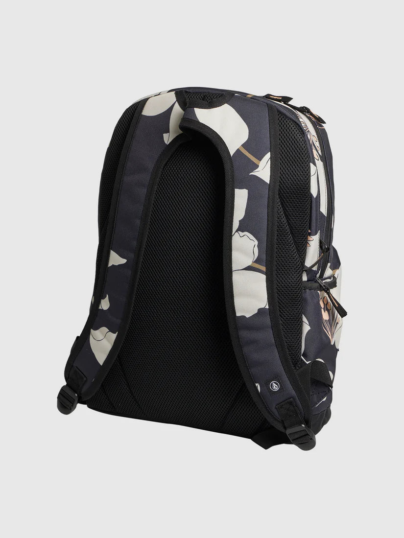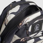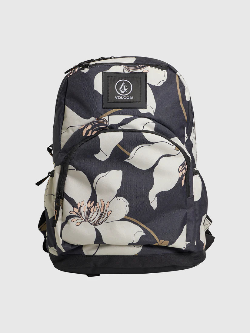 Funky, functional Volcom backpack with all-over print. Multiple compartments, padded laptop sleeve, and organised pockets. Ergonomic straps and air mesh back for all-day comfort. Stylish embroidery and embellishments blend style and utility. Featured here in the Black colourway.