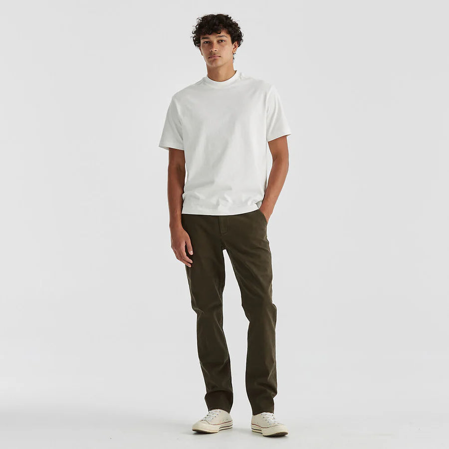 The comfort, stretch cotton chino, now with a zipper fly is a great all-rounder from work to the weekend. The chino is slim through the waist and thigh, featuring a narrow hem. Made in a soft, brushed stretch twill cotton that is reliable and comfortable.
