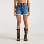WRANGLER DENIM SHORTS - HI BELLS / BLUE FLIP
