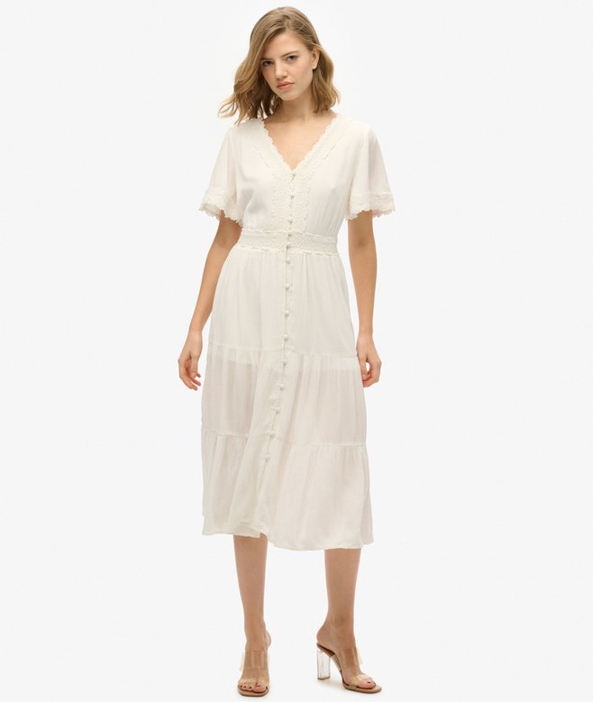 SUPERDRY - IBIZA S/S MIDI TEA DRESS-WHITE