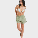ROXY LINEN SHORTS-LEKETIO BAY II/OIL GREEN