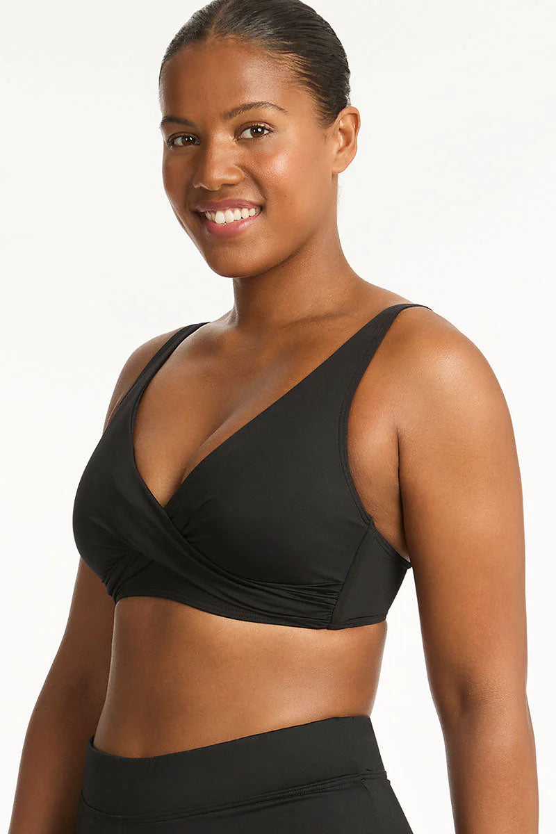 SEA LEVEL BIKINI - ESSENTIALS CROSS FRONT MULTIFIT BRA TOP / BLACK16