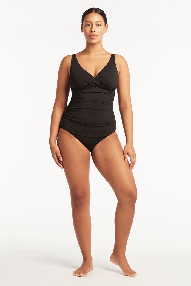 SEA LEVEL SWIM - ESSANTIALS CROSS FRONT MULTIFIT SINGLET TOP / BLACK