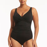 SEA LEVEL SWIM - ESSENTIALS CROSS FRONT MULTIFIT ONE PIECE / BLACK