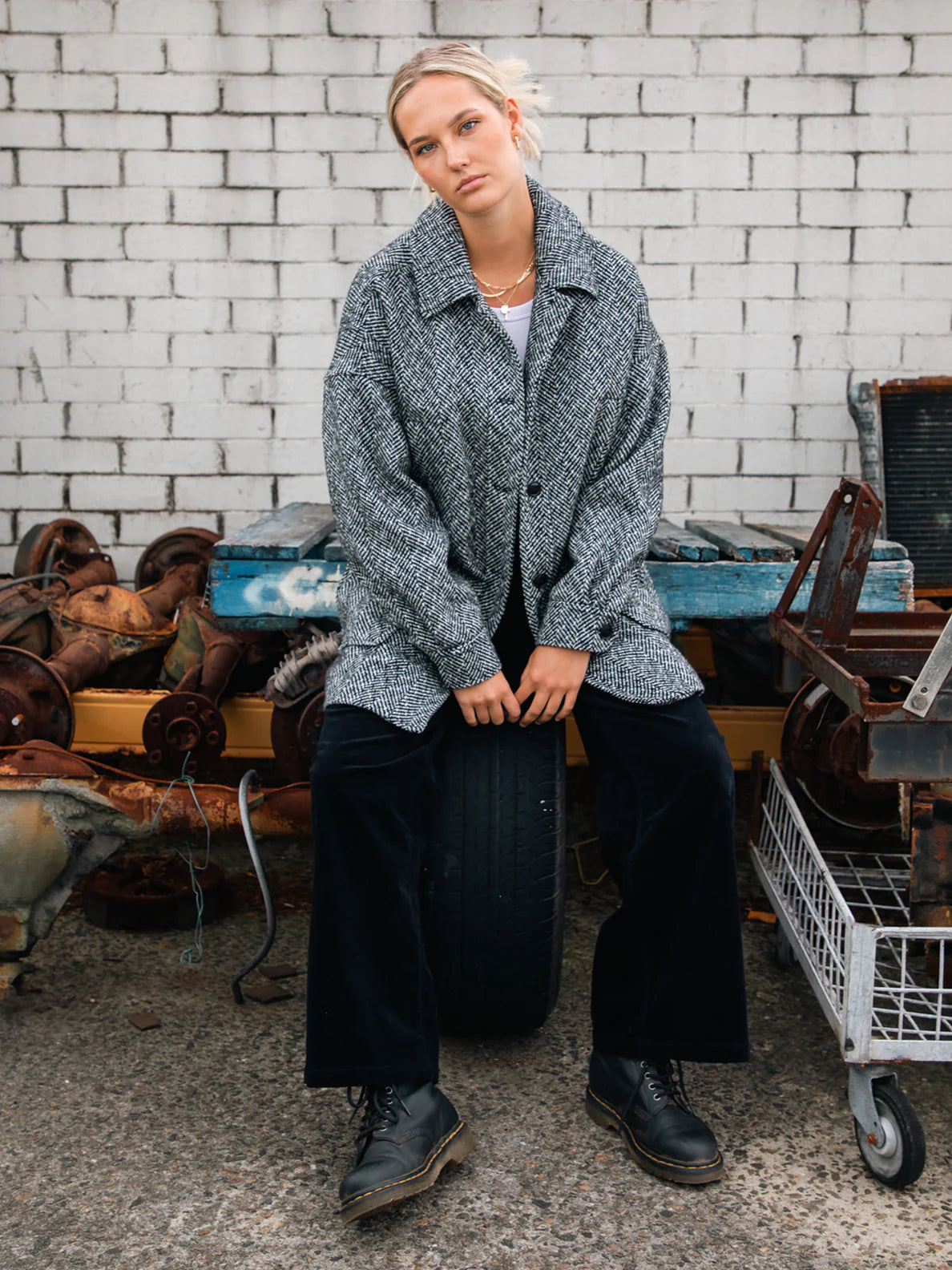 - Oversized with dropped shoulder coat fit