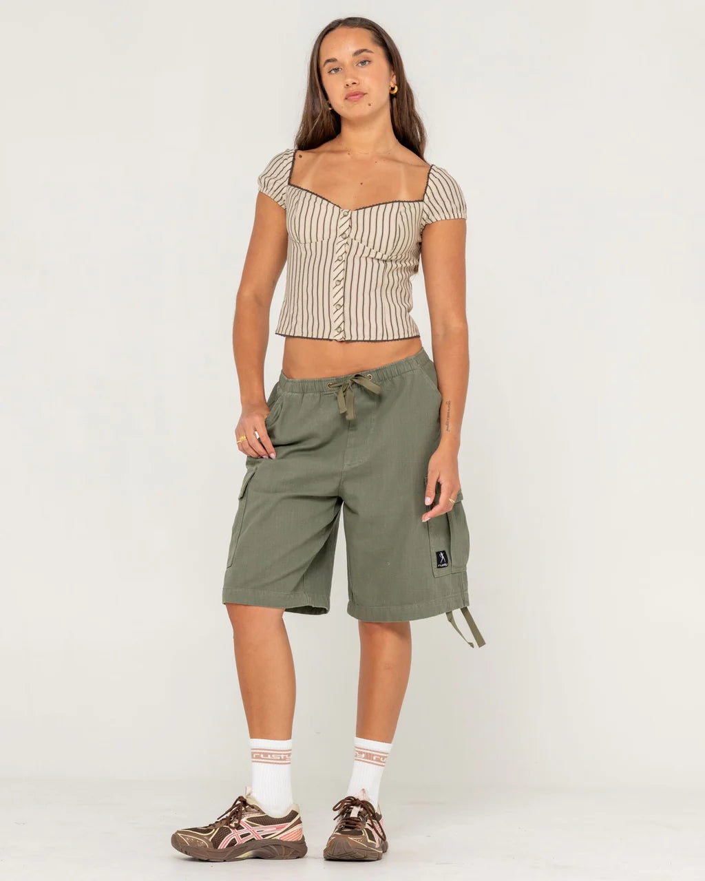 RUSTY - SANDY BUTTON UP TOP - OATMEAL STRIPE
