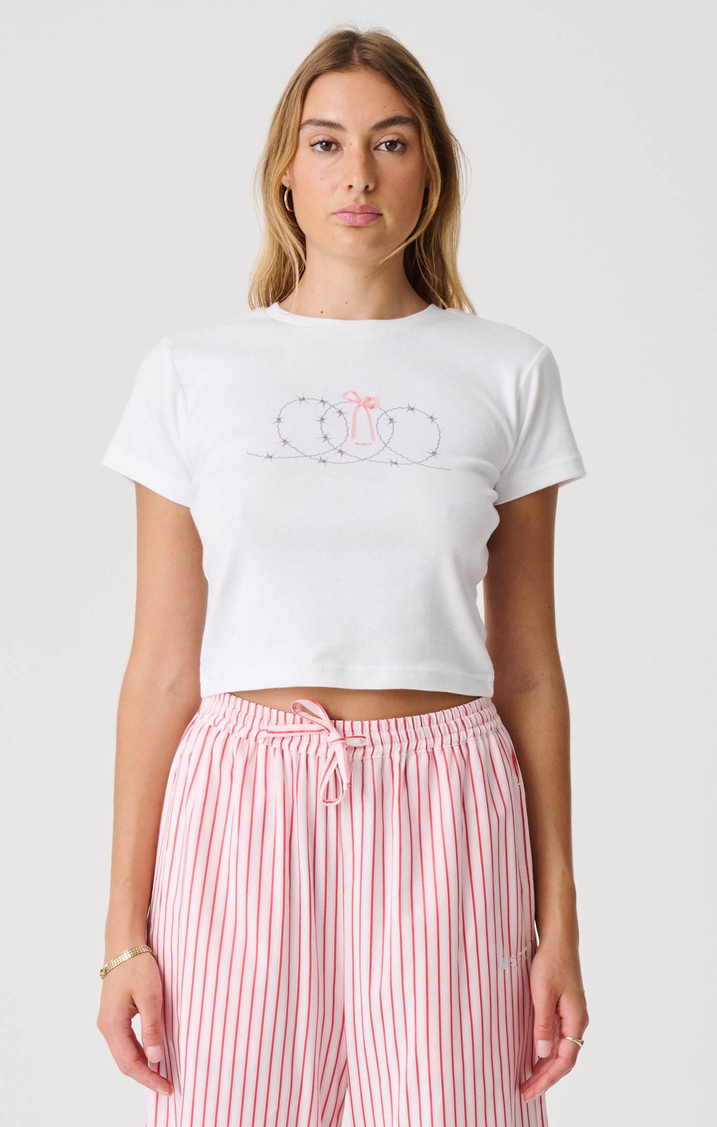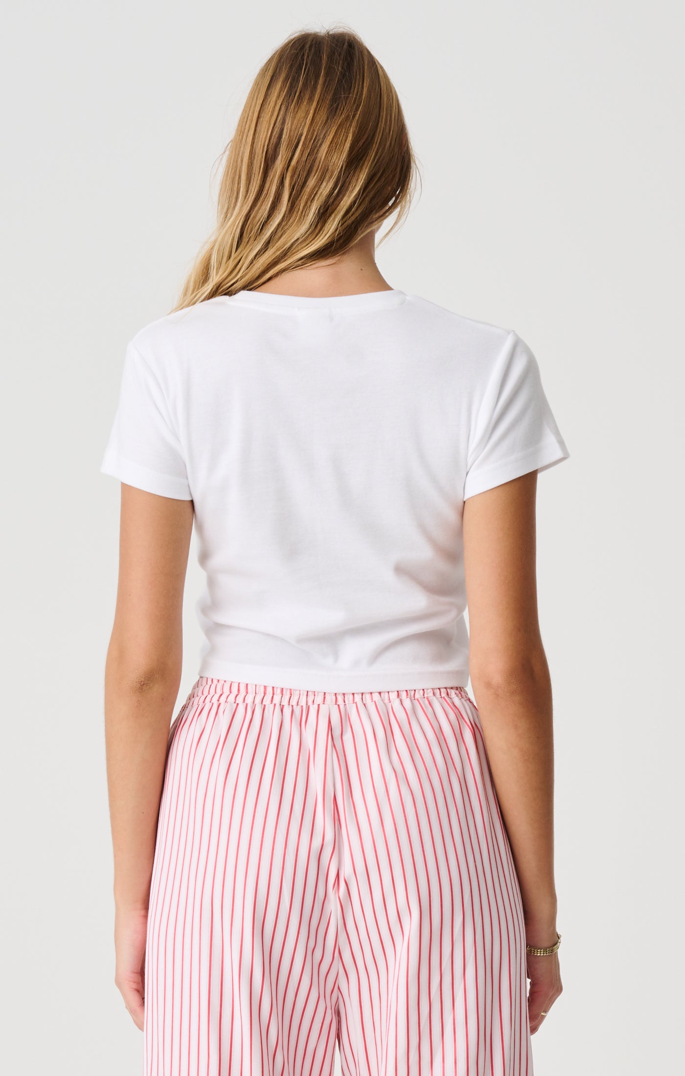-Fitted, cropped length short sleeved Tee