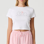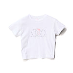 The Barbed Rib Tee in Solid White is a slim fitting SS tee in Cotton 1x1 rib, featuring a 1x1 rib neckband & CF chest print.