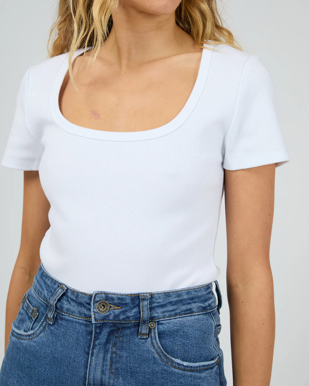 Introducing the Mia Tee. The perfect addition to your capsule wardrobe. Featuring a scoop neckline, this top offers both style and comfort. Elevate your look with this tee that is perfect for layering, it will be your favourite staple piece! Available in multiple colour ways.