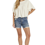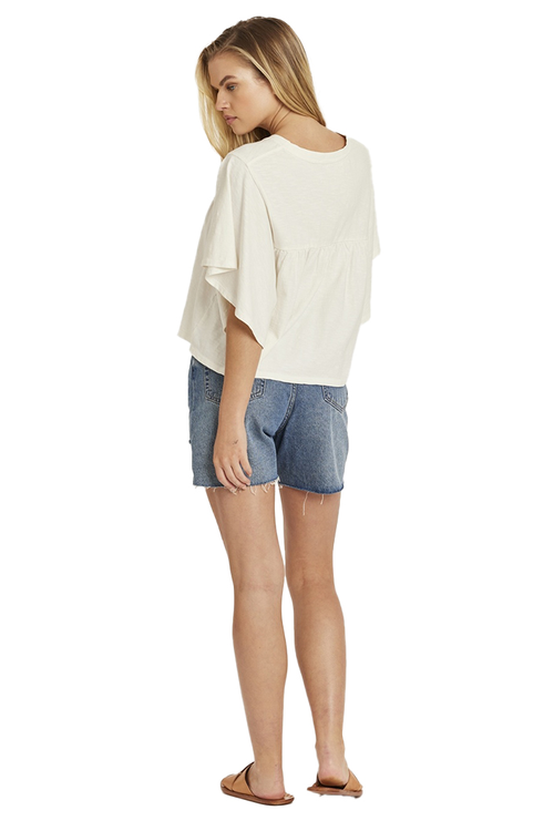 A cozy knit top with fluttery butterfly sleeves, playful front and back yokes and a curved hemline that adds a touch of whimsy to your wardrobe